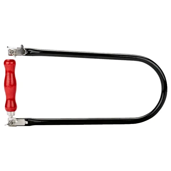 Fret saws with wooden handle, saws frame made of steel tube 12 mm diameter, maximum cutting depth 300 mm suitable for blade length 130 mm