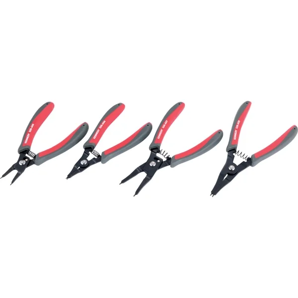 4-piece of Pro-Torq sprung circlip pliers set includes internal and external straight jaw pliers with a polypropylene core and dual-material grip handles. It is supplied in a plastic moulded carry case