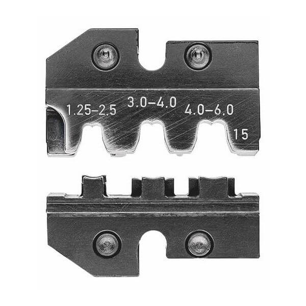 Set of crimping dies for plug connectors and non-insulated open plug-type connectors 3 crimp profiles for wire size 1.5 – 6.0 sq.mm