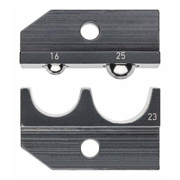 Set of crimping dies for non-insulated cable connectors connectors 2 crimp profiles for wire size 16 / 25 sq.mm