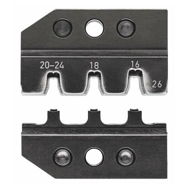 Set of crimping dies for Molex connectors Mini-Fit series series 3 crimp profiles for wire size 24 – 16 AWG suitable with locator 97 49 26 1 makes it easier to guide the contact during the crimping process