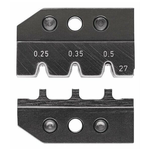 Set of crimping dies for MQS connectors without single wire seal from Tyco Electrinocs 3 crimp profiles for wire size 0.25 – 0.5 sq.mm suitable with locator 97 49 27 1 makes it easier to guide the contact during the crimping process
