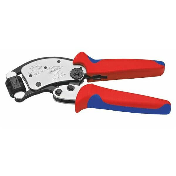 Crimp assortment for wire ferrules with plastic collar size 0.5-10 Sq.mm and Self-Adjusting crimping pliers Knipex 97 53 04