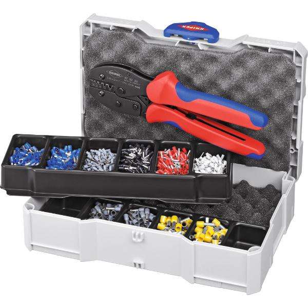 Crimp assortment for wire ferrules with plastic collar size 0.5-6 Sq.mm and PreciForce crimping pliers Knipex 97 52 38