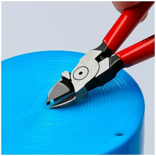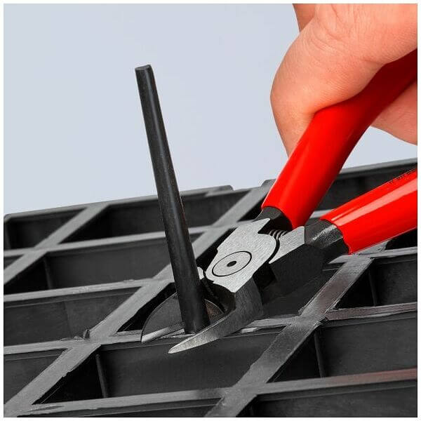Diagonal cutter for plastics with plastic coated handle and opening spring size 140 mm