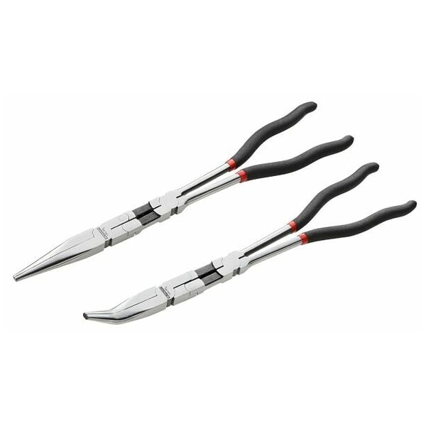 Set of 2 double jointed extra long half-round nose pliers length 340 mm one straight one 45 degree angled
