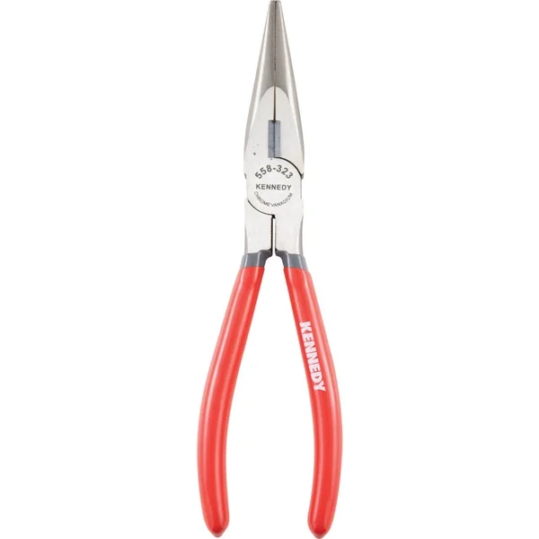 Long reach needle nose pliers with half-round jaws plastic coated handles length 200 mm
