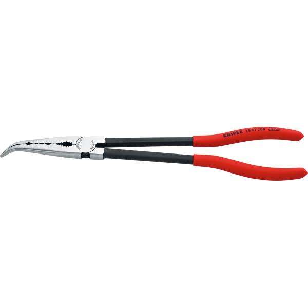 Extra long reach needle nose pliers with half-round bending 45 degree jaws plastic coated handles length 200 mm