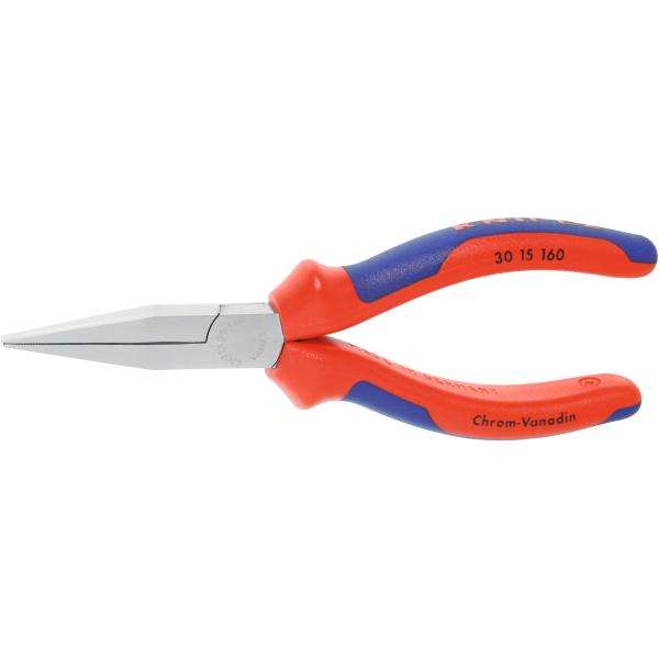 Long nose pliers trapezoidal jaws chrome-plated with multi-component grips length 160 mm