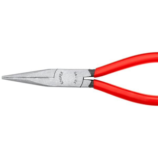 Extra long reach needle nose pliers with half-round jaws plastic coated handles length 200 mm