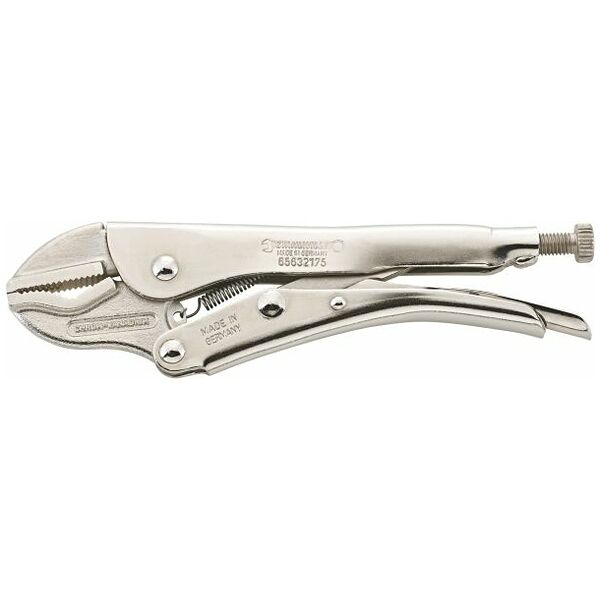 Universal locking grip pliers prism jaws with quick-release lever made of chromium vanadium steel bright nickel-plated max gripping capacity 25 mm length 175 mm