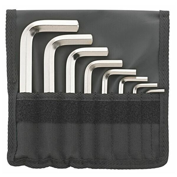 Set of short hexagon L-wrench made of chrome alloy steel nickel-plated 8 pieces size 3 / 4 / 5 / 6 / 8 / 10 / 12 / 14 mm in polyester textile case