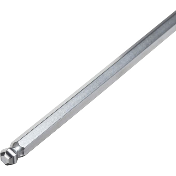 Long hexagon L-wrench with ball ended and short neck for work in restricted the height made of structural steel hard chrome plating length 13 x 180 mm size 6 mm