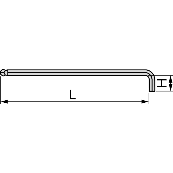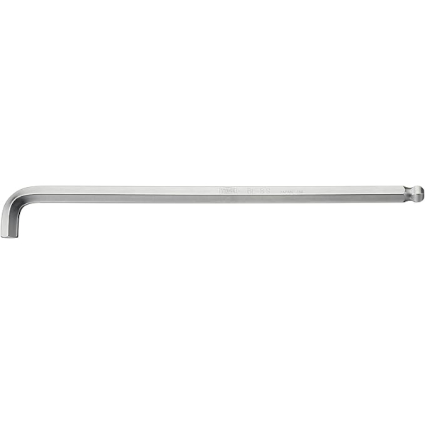 Long hexagon L-wrench with ball ended and short neck for work in restricted the height made of structural steel hard chrome plating length 8 x 127 mm size 3 mm