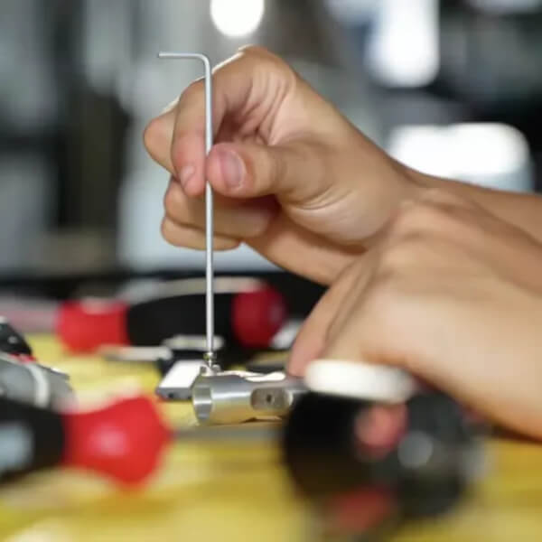 Long hexagon L-wrench with ball ended and short neck for work in restricted the height made of structural steel hard chrome plating length 9 x 142 mm size 4 mm