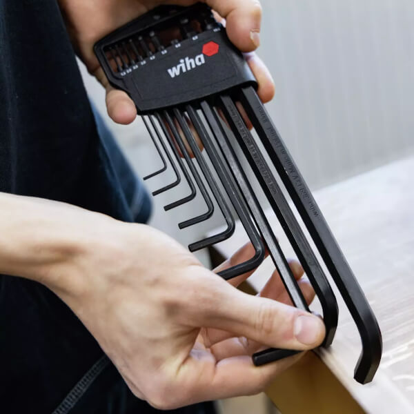 Set of hexagon L-wrench made of high quality steel chrome-plated with Hex-Plus profile allows socket head screws to live longer 9 pieces size 1.5-10 mm in wear-resistant clip