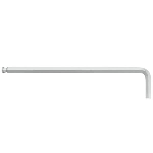 Long hexagon L-wrench with ball ended and short neck for work in restricted the height made of structural steel hard chrome plating length 16 x 198 mm size 8 mm