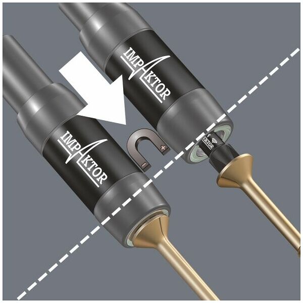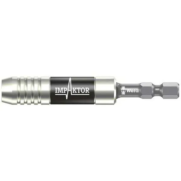 Impaktor bit holder with retaining ring and magnet made of stainless steel 1/4 inch hexagon drive shape E6.3 length 75 for holding hexagon bits 1/4 inch shape C6.3 suitable for use with impact drivers
