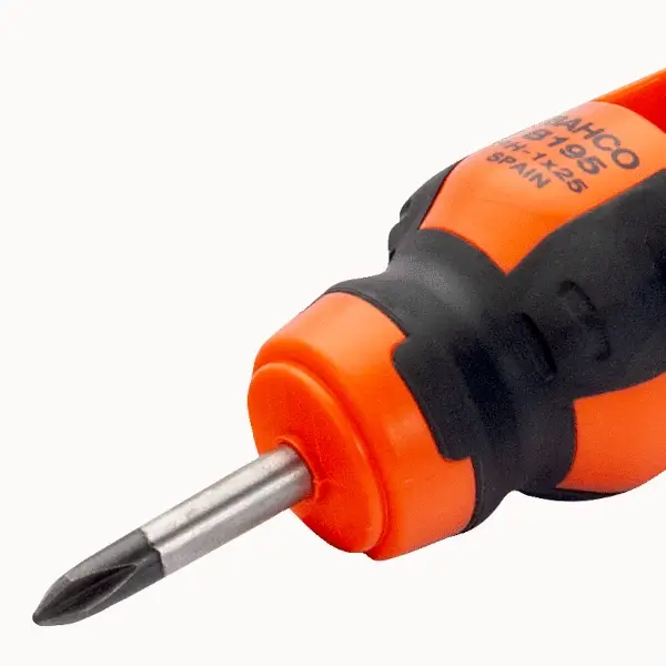 BahcoFit stubby phillips screwdrivers blade made of high performance alloy steel chrome plated against corrosion for working in confined spaces comfortable and higher torque blade length 25 mm size PH 2