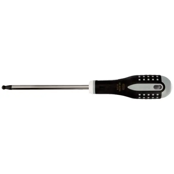 Ergo hexagon screwdriver ball-end made of high performance alloy steel chrome plated long tool life, with soft material handle for superior griping and greater force transmission, blade length 100 mm size 4 mm