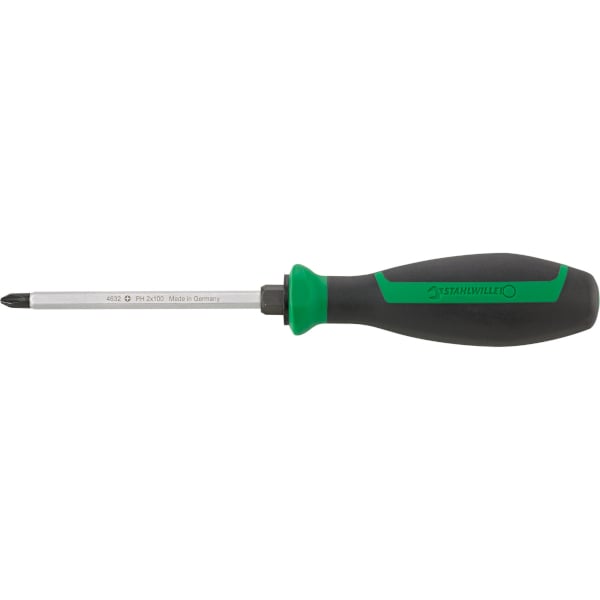 Phillips screwdriver made of chrome alloy steel matt chrome-plated through-hardened length 100 mm with 3-component handle hexagon drive 10 mm size PH 2