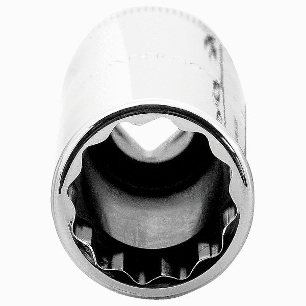 Long Bi-hexagon socket 1/2 inch with 12- point Dynamic-Drive profile made of high-performance alloy steel length 82.6 mm size 7/8 inch