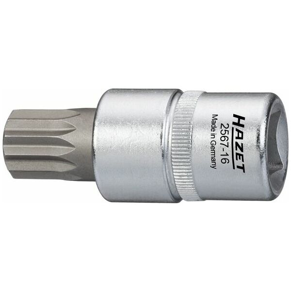 Tamper-resistant XZN bit socket 1/2 inch square drive with knurling surface chrome-plated overall length 60 mm for gearbox oil change size M16