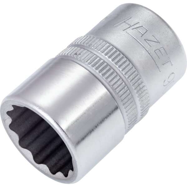 Bi-hexagon socket 1/2 inch square drive chrome-plated polished with 12-points traction profile size 17 mm