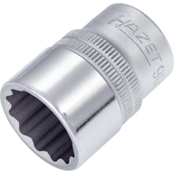 Bi-hexagon socket 1/2 inch square drive chrome-plated polished with 12-points traction profile size 20 mm