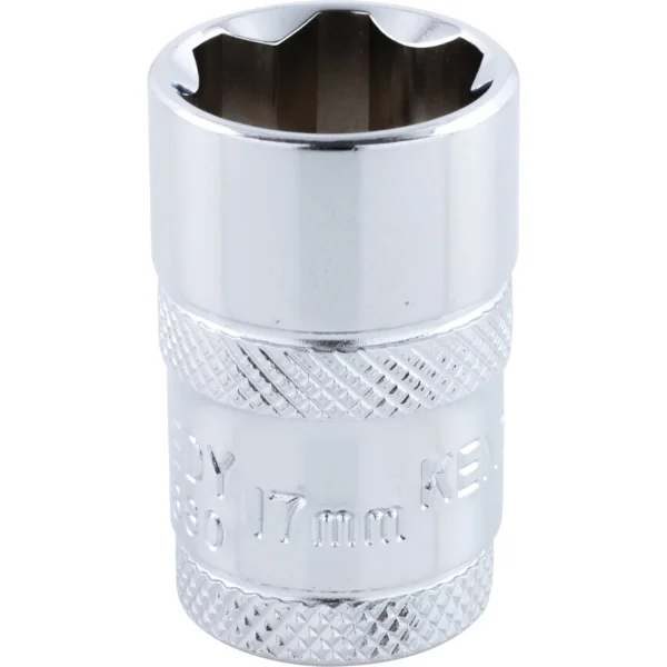 KenGrip Socket is a 1/2-inch square drive with a patented design that grips up to 95% of rounded-off fasteners, fully chrome-plated finish for easy cleaning overall length 37 mm suitable for fasteners sized 17 mm