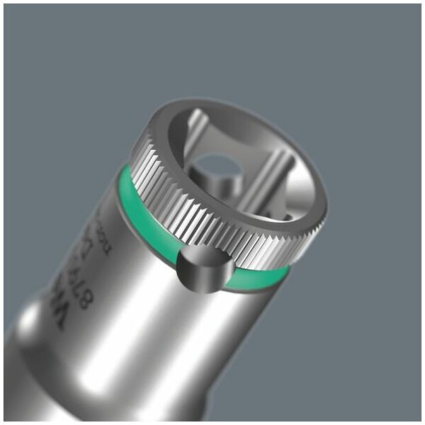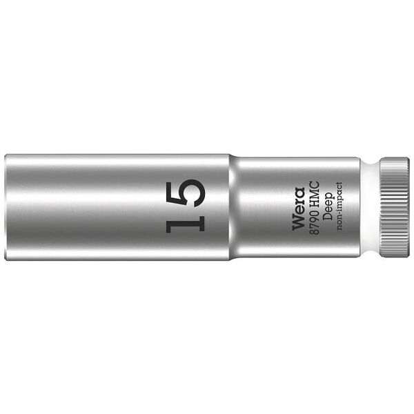 Deep hexagon socket 1/2 inch with colour coding by size made of matt chrome chrome-vanadium length 83 mm size 15 mm