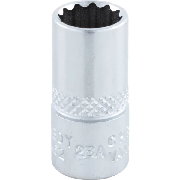 British Association (BA) standard socket with 1/4-inch square drive, chrome vanadium steel with polished finish, suitable for precision electrical and electronic assembly work, overall length 25 mm size 2-BA
