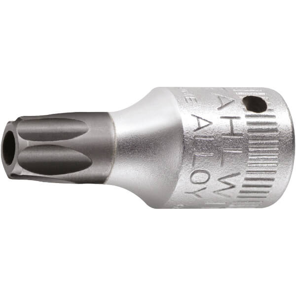 Torx screwdriver bit socket with tamper resistant 1/4 inch square drive made of chrome-alloy steel chrome plated lightweight length 28 mm size TX 30
