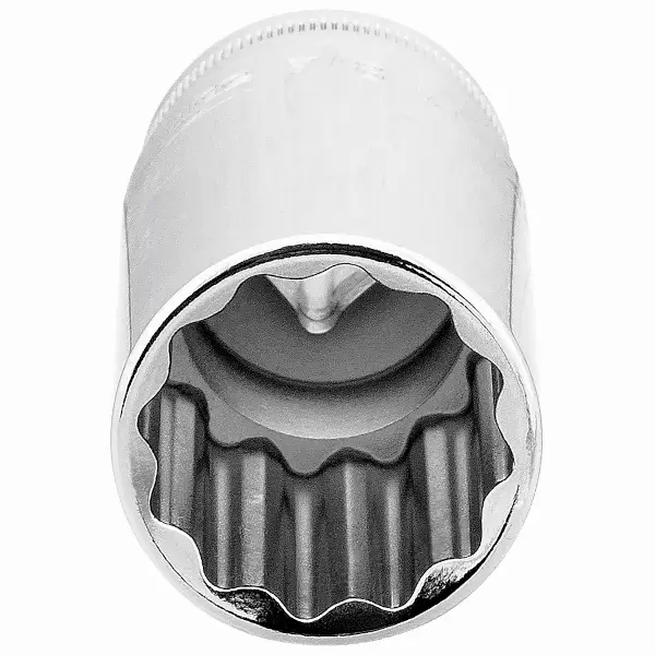 Long Bi-hexagon socket 3/8 inch square drive with 12-points Dynamic-Drive profile made of high-performance alloy steel highly polished finish overall length 64 mm size 5/16 inch
