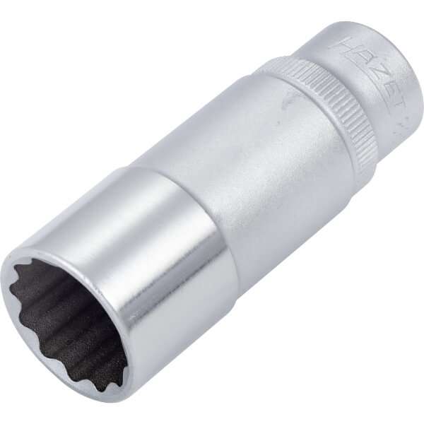 Long Bi-hexagon socket 3/8 inch square drive chrome-plated polished with 12-points traction profile length 60 mm size 17 mm