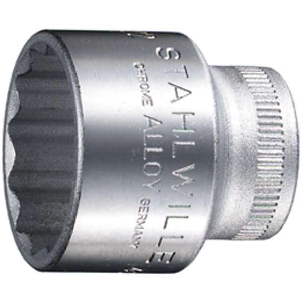 Bi-hexagon socket 3/8 inch square drive with AS-Drive bi-hexagon profile made of HPQ high performance steel chrome plated length 35 mm size 22 mm