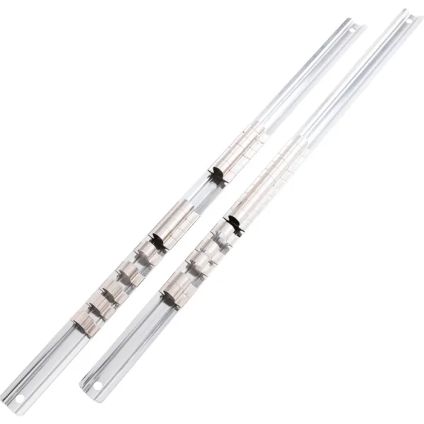 Steel bright chrome plated socket rail for storing square drive sockets, can be fixed or loose in a toolbox or fitted to a bench or wall, compatible with any size square drive socket, length 420 mm