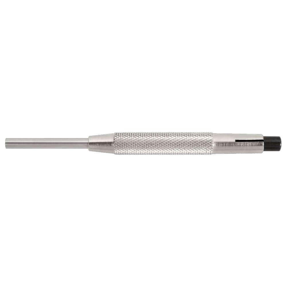 Cylindrical drift punch made of high-performance alloy steel nickel finished, guide sliding sleeve with knurled, overall length 100 mm tip diameter 3.9 mm