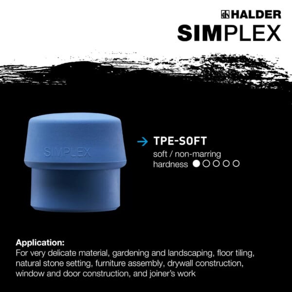 SIMPLEX Blue TPE-soft inserts strong impact cushioning hardness of approximate 65 Shore A for soft-face mallets head diameter size 30 mm