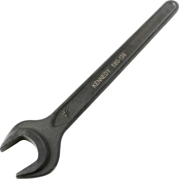 Heavy-duty, open-ended wrench made of forged and hardened chrome vanadium steel and has a black oxide finish for protection against corrosion and wear, overall length of 300 mm size 36 mm