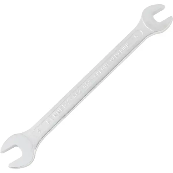 Double open-ended wrench is ideal for general use, made of chrome vanadium steel and has a satin chrome finish, making it easy to clean. The overall length is 135 mm and the sizes are 8 x 9 mm