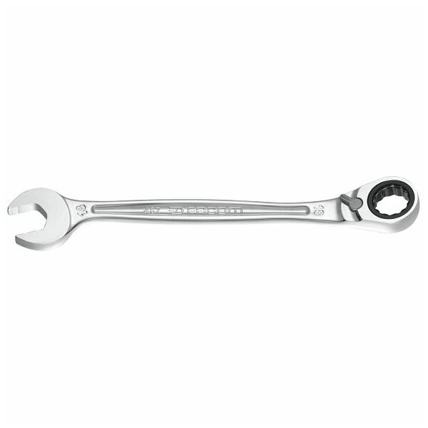 Combination wrench with reversible ratchet 72 teeth reversing by lever made of high quality steel satin chrome finish length 455 mm size 34 mm