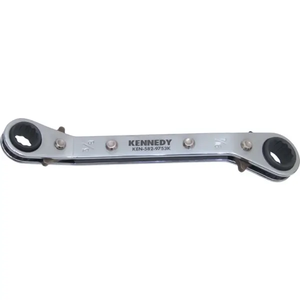 Double-ring end ratchet wrench has a built-in ratchet mechanism, making it ideal for use in confined spaces where larger wrenches would be ineffective, size 1/2 x 9/16 inch