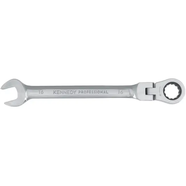 Combination ratchet wrench flexi-head, provide operationality even in confined spaces, made of chrome vanadium steel with a mirror-polished finish easy to clean, overall length 215 mm size 16 mm