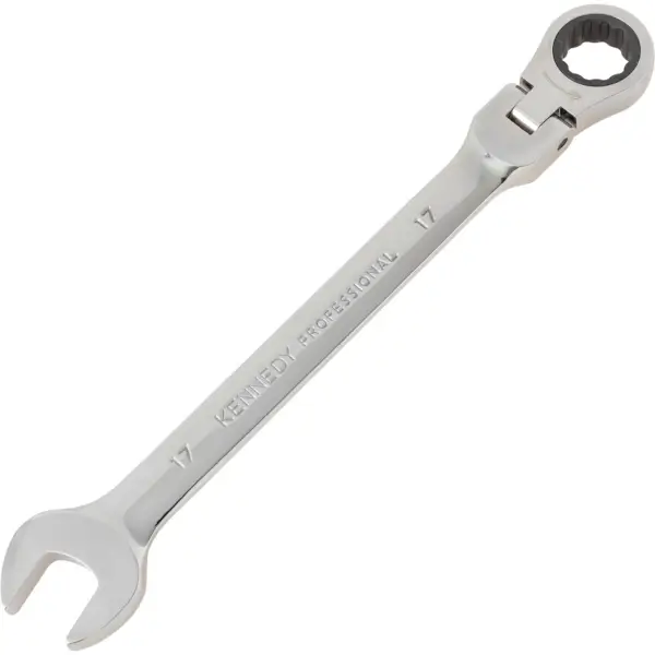 Combination ratchet wrench flexi-head, provide operationality even in confined spaces, made of chrome vanadium steel with a mirror-polished finish easy to clean, overall length 233 mm size 17 mm