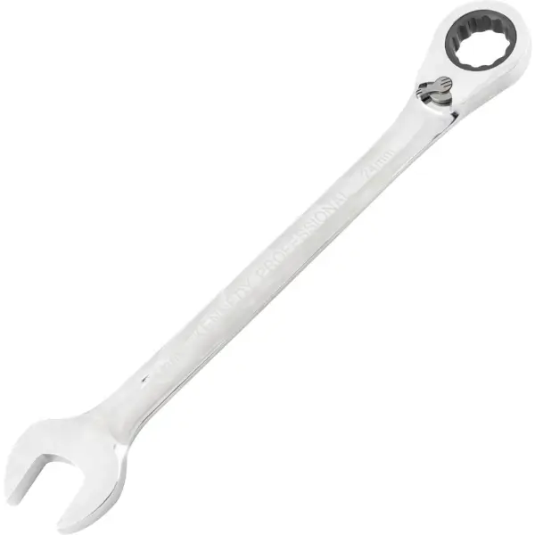 Combination wrench with reversible ratchet 72 teeth reversing by lever and rapid open-end made of high quality steel satin chrome finish length 190 mm size 14 mm