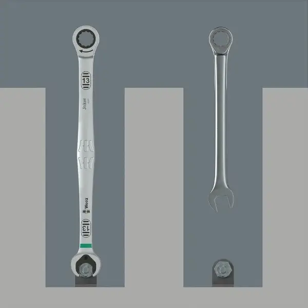 Ratcheting combination wrench 80 teeth extra-long version with holding function made of high-performance chrome-molybdenum steel nickel-chromium coating length 209 mm size 10 mm