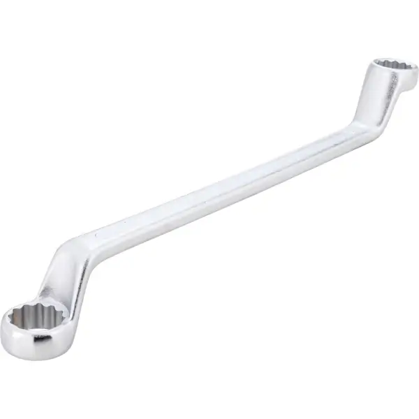 Offset ring wrench is suited to industrial use, made of chrome vanadium steel for optimum durability and product longevity, and has a satin finish, overall length of 270 mm and a size of 17 x 19 mm