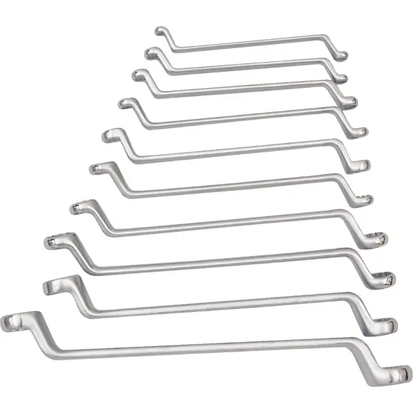 Set of offset ring wrenches is designed to fit bolts and nuts, made from quality chrome vanadium steelwith satin finish, contains 10 pieces sizes 1/4 x 5/16 to 15/16 x 1 inches