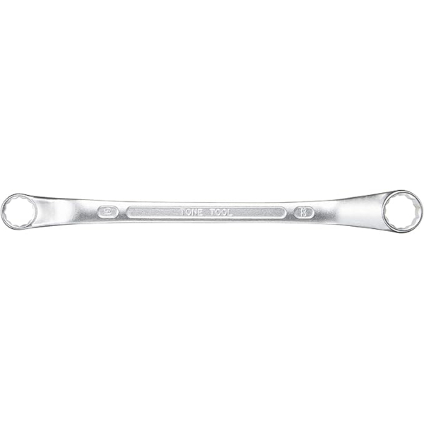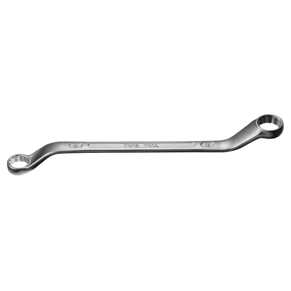 Long ring wrench offset 45 degree angle for avoiding surrounding obstacles made of structural steel mirror satin finish length 307 mm size 19 x 22 mm